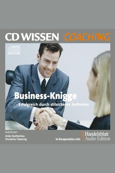 Wer sich zu benehmen weiß, hat mehr Erfolg im Business. Egal, ob im Meeting, beim Small Talk oder am Messestand - gute Manieren ermöglichen ein sicheres Auftreten im Beruf. Anke Quittschau und Christina Tabernig verraten Tipps und Tricks aus der Praxis. Die Inhaberinnen der Agentur korrekt! wissen Antworten auf alle Fragen zu modernen Umgangsformen im Job.Inhalt: 1. Der erste Eindruck - Der Bruchteil einer Sekunde entscheidet 6:402. Business-Dresscode - Stilsicher kleiden im Job 11:083. Begrüßung & Co. - Die Regeln der Business-Etikette 13:004. Small Talk - Die kleinen Tricks des persönlichen Gesprächs 9:025. Besprechungen - Effiziente Vor- und Nachbereitung 6:476. Korrektes Telefonieren - Kommunikation ohne Körpersprache 7:387. E-Mail-Knigge - Form und Anwendung sicher beherrschen 7:388. Das Geschäftsessen - Auf den richtigen Umgang kommt es an 9:039. Einladungen - Stilvoll aussprechen und annehmen 8:14
