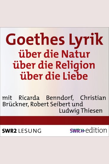 Dieses Hörbuch enthält Gedichte über die Natur (Gefunden, Gleich und gleich, Meeres Stille, Mailied, Blumengruß, Frühzeitiger Frühling, Herbstgefühl, An den Mond, Vier Jahreszeiten, Die Metamorphose der Pflanzen, Epirrhema) über die Religion (Wandrers Nachtlied, Gretchens Gebet, Gesang der Geister über den Wassern, Die wandelnde Glocke, Grenzen der Menschheit, Das Unser Vater, ein schön Gebet…, Prooemion, Ich wandle auf weiter, bunter Flur, Im Innern ist ein Universum auch…) und über die Liebe (Heidenröslein, Blinde Kuh, Die Spröde, Wechsellied zum Tanze, Selbstbetrug, Glück und Traum, Brautnacht, Nachgefühl, Neue Liebe neues Leben, Rastlose Liebe, Schäfers Klagelied, Die Spinnerin, Vor Gericht, Das Wiedersehen, Abschied, Die Liebende schreibt, Pygmalion, Die Liebhaber, Ungleiche Hausgenossen). Auswahl: Gerhard Adler, Regie: Lothar Schock
