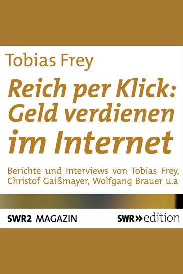 Das Internet ist zu einer wahren Goldgrube geworden, es lässt sich auf verschiedene Arten richtig viel Geld verdienen: Egal, ob zum Beispiel als Pokerprofi, YouTube-Produzent oder mit dem Versand von Lebensmitteln. Immer mehr Menschen finanzieren sich gemütlich von zu Hause aus ihren Lebensunterhalt und werden reich per Klick. Enthalten sind Interview mit George Danzer, einem der besten Pokerspieler der Welt und Hans Derer von der 7us media group GmbH