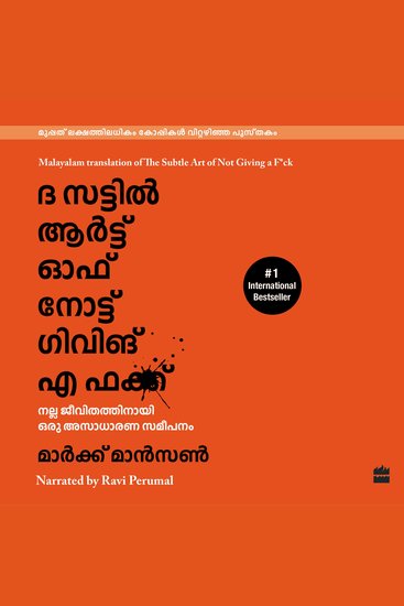 This is the Malayalam language audiobook edition of Mark Manson's bestselling book The Subtle Art of Not Giving a F*ck, translated from the English. In this generation-defining self-help guide, a superstar blogger cuts through the crap to show us how to stop trying to be ""positive"" all the time so that we can truly become better, happier people For decades, we've been told that positive thinking is the key to a happy, rich life. ""Fuck positivity,"" Mark Manson says. ""Let's be honest, shit is fucked and we have to live with it."" In his wildly popular Internet blog, Manson doesn't sugar-coat or equivocate. He tells it like it is-a dose of raw, refreshing, honest truth that is sorely lacking today. The Subtle Art of Not Giving a F**k is his antidote to the coddling, let's-all-feel-good mind-set that has infected American society and spoiled a generation, rewarding them with gold medals just for showing up. Manson makes the argument, backed both by academic research and well-timed poop jokes, that improving our lives hinges not on our ability to turn lemons into lemonade, but on learning to stomach lemons better. Human beings are flawed and limited. Not everybody can be extraordinary, there are winners and losers in society and some of it is not fair or your fault, he says. Manson advises us to get to know our limitations and accept them. Once we embrace our fears, faults and uncertainties, once we stop running and avoiding and start confronting painful truths, we can begin to find the courage, perseverance, honesty, responsibility, curiosity and forgiveness we seek. There are only so many things we can give a fuck about so we need to figure out which ones really matter, Manson makes clear. While money is nice, caring about what you do with your life is better, because true wealth is about experience. A much-needed grab-you-by-the-shoulders-and-look-you-in the-eye moment of real talk, filled with entertaining stories and profane, ruthless humor, The Subtle Art of Not Giving a F**k is a refreshing slap for a generation to help them truly lead contented, grounded lives.