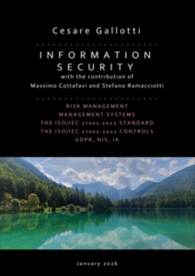 In this book (updated in 2026), the following subjects are included: information security, the risk assessment and treatment processes (with practical examples), the information security controls, the many information security legislation requirements (GDPR, NIS, IA, etc.).The text is based on the 2022 editions of the ISO/IEC 27001 and the ISO/IEC 27002 standards. The author is a participant to the editing meetings for these standards.Appendixes include short presentations on auditor managmeent, on ISO/IEC 27001 certifications and check lists for change management, contracts and for the transition from the 2013 to the 2022 controls.CESARE GALLOTTI has been working since 1999 in the information security and IT process management fields and has been leading many projects in Italy, Europe, Asia and Africa, for companies of various sizes and market sectors.He has been leading projects as consultant or auditor for the compliance with ISO/IEC 27001, ISO 9001, ISO/IEC 20000 or ISO 22301 and has been designing and delivering ISO/IEC 27001, privacy and ITIL training courses.Some of his certifications are: Lead Auditor ISO/IEC 27001, Lead Auditor 9001, Lead Auditor ISO/IEC 42001, CISA, ITIL Expert and CBCI, CIPP/e.Since 2010, he has been Italian delegate for the ISO/IEC JTC 1 SC 27 WG 1, i.e. the ISO/IEC 27000 standard family editing group.Web: www.cesaregallotti.it; Blog: blog.cesaregallotti.it