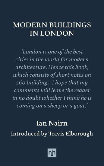 'Without any doubt, London is one of the best cities in the world for modern architecture. But it is also one of the biggest cities in the world, and it does not make a display of its best things. A visitor looking for new buildings in the City and the West End might well be justified in turning away with a shudder. Yet delightful things may be waiting for him in Lewisham or St. Albans.' Ian Nairn, from the 'Foreword' to Modern Buildings in London. As one of the few architectural critics to eschew purely aesthetic modes of analysis, Ian Nairn's timeless books on modern urban cities have been hailed as some of the most significant writing about contemporary Britain, while also being praised as alternative 'guidebooks' for curious travellers. First published in 1964, Modern Buildings in London celebrates the character of buildings that were immediately recognisable as 'modern' in 1964, many of which were not the part of the well-known landscape of London but instead were gems that Nairn stumbled across. Written 'by a layman for laymen', Nairn's take on modern design includes classic buildings such as the Barbican, the former BBC Television Centre and the Penguin Pool at Regent's Park Zoo as well as schools, old timber yards, ambulance stations, car parks and even care homes.