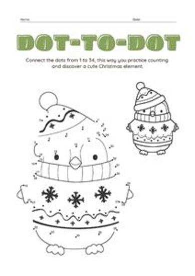 Dot-To-Dot Christmas Worksheet Set: Connect the dots from 1 to 34, this way you practice counting and discover a cute Christmas element.