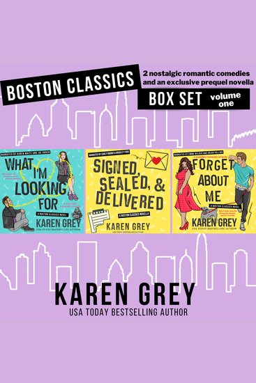 ⭐⭐⭐⭐⭐ “I am loving this series, each book is entertaining and contains plenty of laugh out loud moments and heartfelt ones.” Bookbub review What I'm Looking For Narrated by Joe Arden & Karen White While financial analyst Kate may be a numbers whiz, computing social situations like happy hour with her colleagues is an entirely different story. But an unexpected exchange with Shakespeare-loving bartender Will is about to turn her life upside down… Signed, Sealed & Delivered Narrated by Bradley Ford & Carly Robins Take a trip back in time to the 1980’s with this exclusive prequel to Forget About Me, where the setting may be retro, but falling in and out of love hasn’t changed. Forget About Me Narrated by Brian Pallino & Emma Wilder Internationally famous underwear model Ben has never forgotten his first love Lucy, his best friend’s younger sister. Back in Boston, the dog he finds on his front porch gives him a second chance with Lucy, but it looks like he might also steal the show… Author's Note: Sadly, the world lost narrator Brian Pallino shortly after he finished recording Forget About Me in 2020. The audiobook community is still mourning the loss along with his family and friends. It took me a few years to put Signed, Sealed & Delivered into audio, partly because I hesitated to use a different narrator, but I finally decided to recast both roles for the prequel novella. I do hope the change isn't too jarring for listeners. XOXO, Karen.