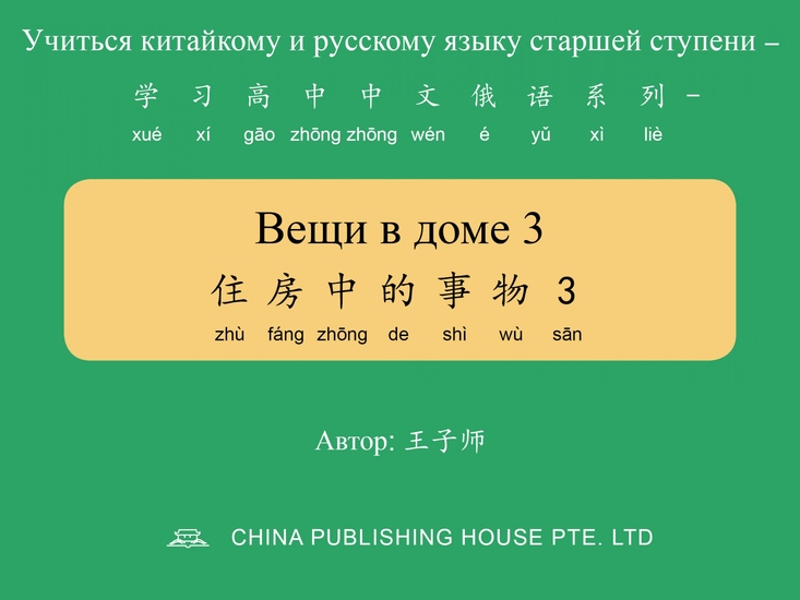 Это русско-китайская электронная книга в формате epub, предназначенная для того, чтобы помочь подросткам выучить простейшие китайские слова, широко используемые в китайском обществе. Благодаря этой книге вы сможете узнать распространенные китайские слова, их произношения и Ханьюй пиньинь (т.е. фонетическая транскрипция китайского языка), связанные с темой "Вещи в доме 3 住房中的事物3". Каждая страница книги содержит написанное китайсое слово, его русский перевод, пиньинь, аудиозапись и тщательно подобранную картинку, иллюстрирующую это слово. Многократно просматривая слово, его перевод, пиньинь и соответствующую картинку, а также слушая аудиозапись, учащиеся могут быстро и естественно запомнить китайское слово, его пиньинь и правильное произношение.